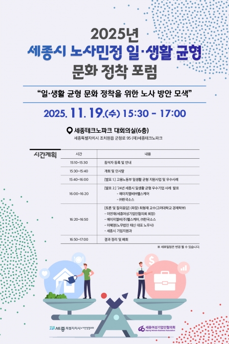 2025년 세종시 노사민정 일생활 균형 문화정착 포럼 개최 안내